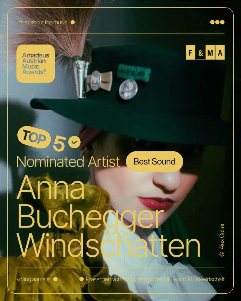 Klassik, Jazz, Pop – es gibt kaum ein Genre, in dem die vielseitige Stimme Anna Bucheggers bislang nicht auf begeistertes Gehör stieß. Ihr Talent bewies sie nicht nur während ihres fulminanten Starmania-Erfolgs 2021, sondern auch bei Auftritten im Salzburger Haus für Mozart oder als Interpretin zahlreicher Cover-Versionen. Mit jeder einzelnen Erfahrung hat die 25-Jährige sich selbst und das Musikbusiness besser kennengelernt. Genauer in sich hineingehorcht, reflektiert und immer wieder neue Lehren daraus gezogen. Zunehmend reifte der Wunsch nach etwas Neuem. Nach einer Vermischung von alpenländischer Folklore mit zeitgemäßer Popmusik. Ganz ohne (rechts)politischem Mief, bürgerlicher Kleingeistigkeit oder dem Abrutschen in seichte Gefilde. Auf ihrem Album „Windschatten“ (VÖ: FR, 04.10.2024) kreiert Buchegger nichts weniger als eine neue Ära musikalischer Volkskultur. Sie verknüpft die raue Ursprünglichkeit des Ländlichen mit der verspielten Klangästhetik gegenwärtiger, urbaner Pop-Produktionen und öffnet damit eine Schublade, die es bisher noch gar nicht gab.